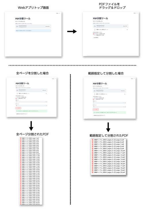 - ファイルアップロード後すぐにPDFのページ数が認識され、適切な範囲選択が可能になる