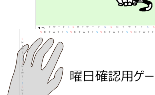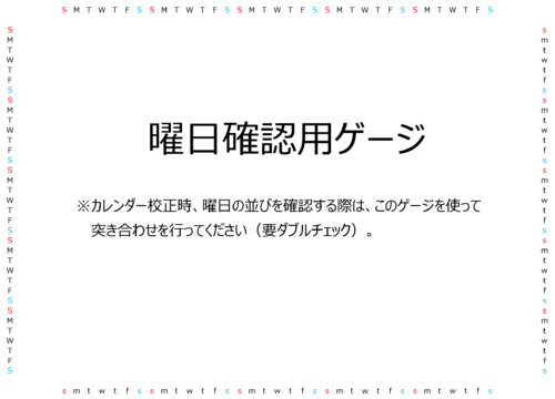 弊社では曜日のゲージを作成し、これを当てて曜日の順番が間違っていないかチェックしています。