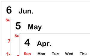 また、日曜日・祝日のみ色が異なる(土曜日が平日と同色)デザインのカレンダーもあります。