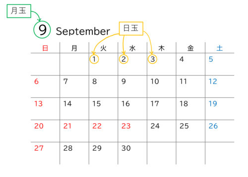 基本的にすべての日に入るため、六曜が入っているカレンダーは日玉と六曜でカレンダー全体を2周チェックするような形になります。