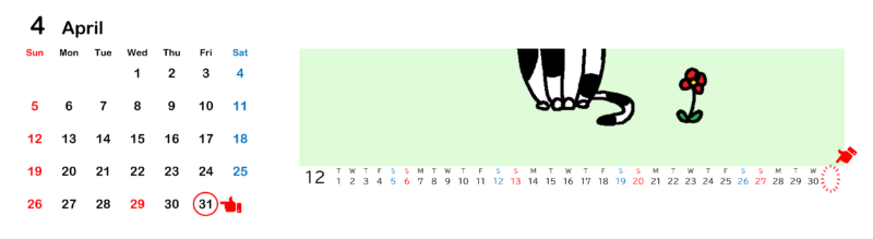 カレンダーをチェックするときのポイント1つ目は、やはりメインとなる日付の部分です。
