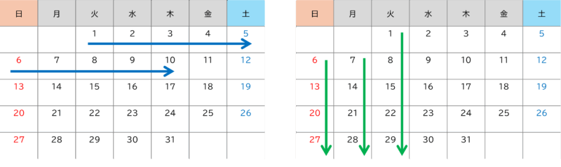 また、縦の並びでチェックすると、曜日との組み合わせも同時に見ることができます。