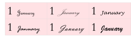 デザインによっては月名を省略して表記するものもあります。省略された表記の場合は、省略記号である末尾の「.」が入っているかなどを確認します。