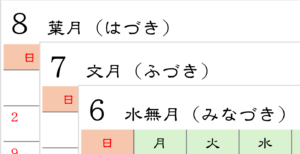 和風月名とは「睦月」「如月」などの月の和風の呼び名のことです。こちらもその月に対応した月名が入っているか、漢字が間違っていないか、よみがながある場合は仮名遣いが間違っていないかを確認します。