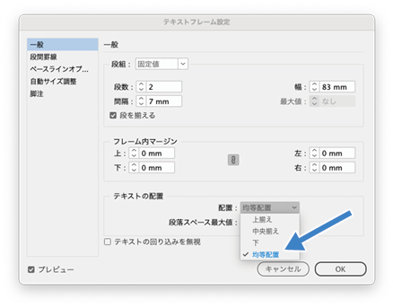 テキストフレーム設定のよく目立つところにそれはあります。