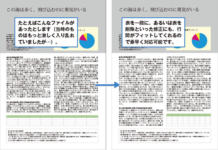 基本的に隙間なく紙面を埋めるという前提でしたので、行間の均等配置が活躍しました。